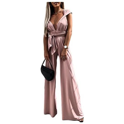 ORANDESIGNE senza maniche vita alta long pantaloni schiena nuda fionda tuta intera aderente da donna elegante tinta unita playsuit tuta cerimonia cocktail overall monopezzi tutine 03-rosa xl