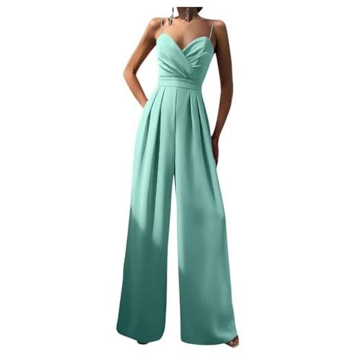 shownicer pantaloni da tuta da donna elegante senza maniche scollo a v tuta con spalline senza schienale gamba larga tinta unita a verde xl