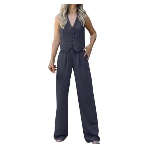 Generico donna pantaloni e gilet casual completo a senza maniche 2 pezzi tuta elastici in vita set di abiti in tinta unita pantalone due pezzi suit abbigliamento formale da ufficio