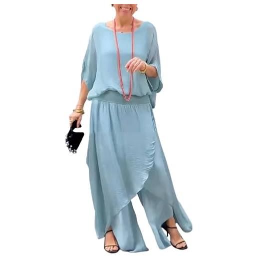 shownicer completo donna elegante tailleur 2 pezzi set completi di pantaloni da cerimonia due pezzi set taglia grande abbigliamento a azzurro xxl