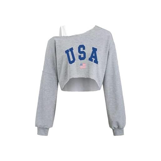 Remidoo top con spalle scoperte da donna felpa corta a maniche lunghe top asimmetrico patchwork camicia, grigio usa, m