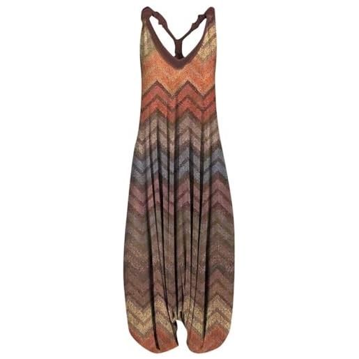 SSLLH tuta estiva da donna, stile boho, con stampa, senza maniche, vintage, pantaloni estivi per donne, casual, larghi, per ragazze, grigio s