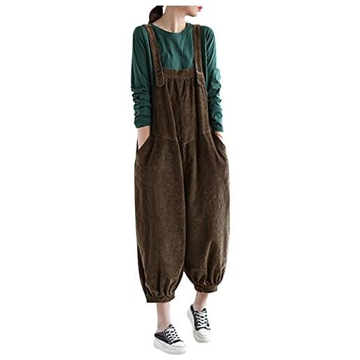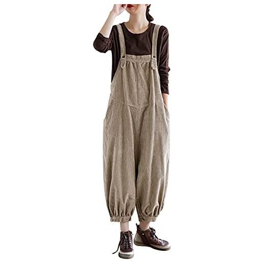 Bigassets donna autunno inverno tute con cinturino regolabile salopette in velluto a coste di cotone khaki s