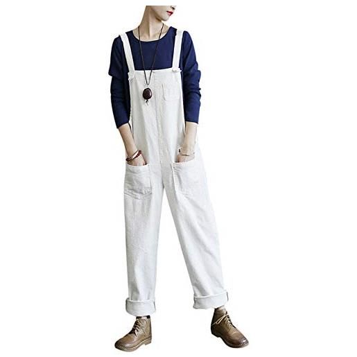 Bigassets donna cotone tute velluto a coste playsuit pantaloni salopette con tasche white