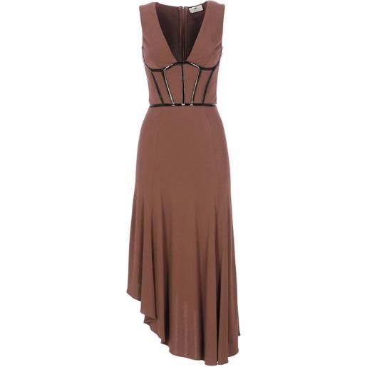 Elisabetta Franchi abito lungo drappeggiato - marrone
