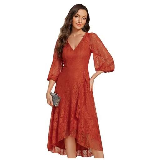 Ever-Pretty vestito da sera donna lungo cintura rotondo manica lunga elegante abiti da cerimonia marrone 52