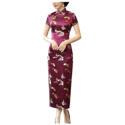 Black Sugar abito qipao corto e lungo a maniche corte con motivo drago in broccato cheongsam tunica, rosso, xl petite