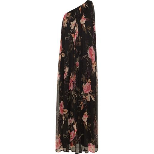 Suncolour abito lungo da donna in chiffon floreale a maniche lunghe monospalla abito lungo da festa abito da cocktail