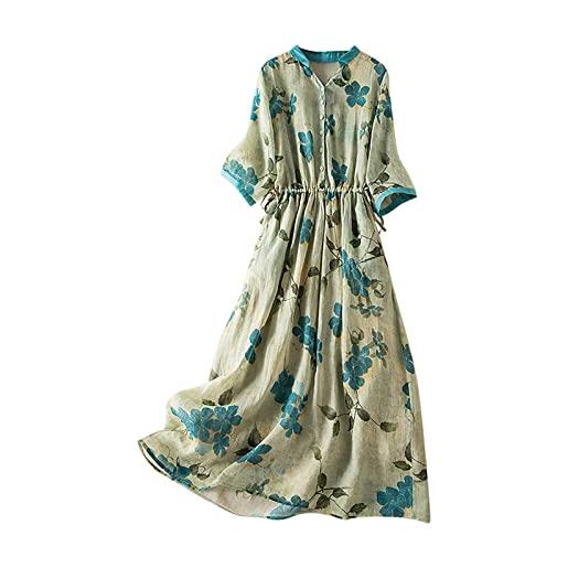 Generic vestito in lino donna elegante stampato spiaggia maxi abito casual elegante girocollo comoda in cotone e lino bohémien vestito oversize elegante girocollo maxi abito vestito donna curvy estivo