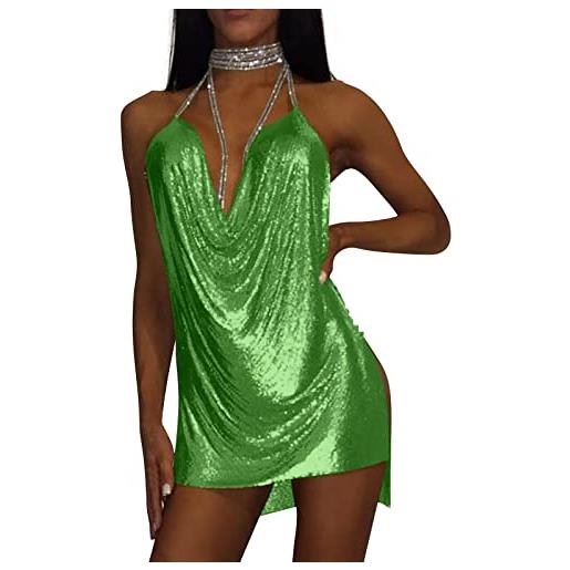 Generic abito con paillettes metallizzate, sexy, da donna, con strass, per l'estate, verde, s