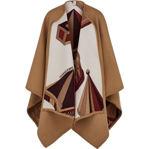 Ferragamo poncho reversibile con stampa rooster - marrone
