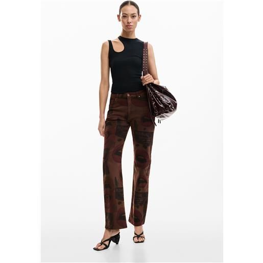 Desigual, pantaloni di jeans stampati, donna, cotone, marrone, 34