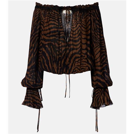 Blumarine top in chiffon con stampa e pizzo
