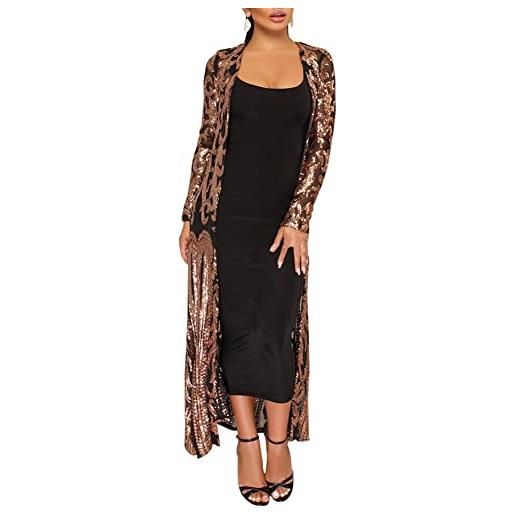 Verwin, abito aderente patchwork con paillettes da donna, a maniche lunghe, abito elegante, abito maxi con piume, abito da festa, nero , xl