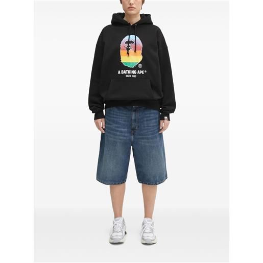 A BATHING APE® felpa in cotone con logo circolare e cappuccio - nero
