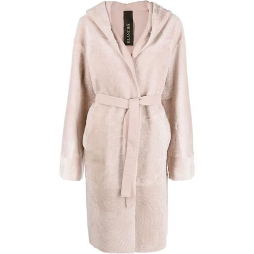 Blancha cappotto in shearling con cintura e cappuccio - toni neutri