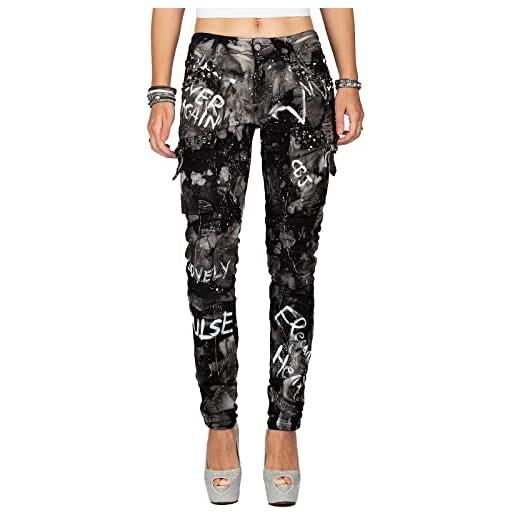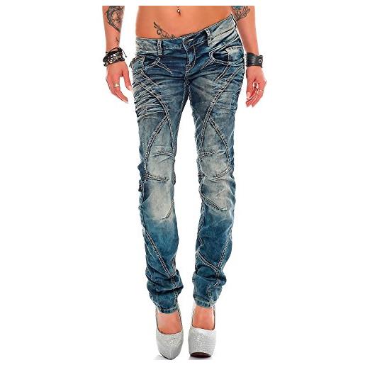 Cipo & Baxx jeans da donna - jeans da donna con look usato e stile destroyed, pantaloni alla moda con toppe, borchie e dettagli decorativi, blu cbw-0347a, 26w x 30l