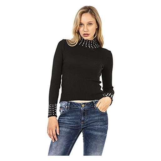 Cipo & Baxx wp208 - maglione da donna a maniche lunghe con colletto con perle, nero , xl