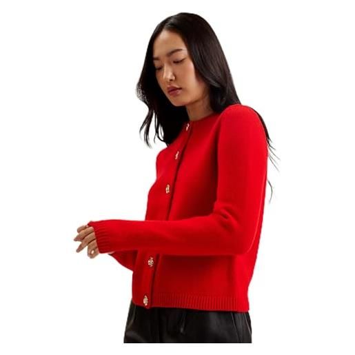 Ted Baker wmk-jaycey-rose button crew neck cardigan, maglione cardigan donna, rosso, 42