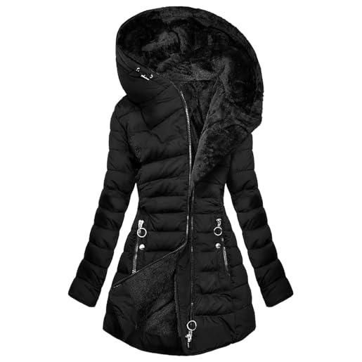 Generico giacca da donna offerte inverno giubbino con cappuccio casual antivento parka in pile elegante maniche lunghe piumino donna taglie forti comodi giubbotto calda moda cappotto slim fit jacket