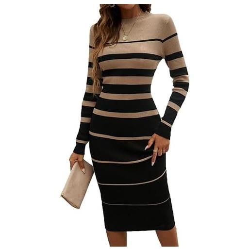 Sumleno 2025 - vestito da donna a righe, a maniche lunghe, girocollo, aderente, a costine, vestibilità aderente, cachi, xx-large