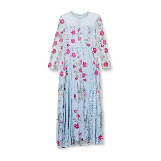 Frock and Frill abito ricamato floreale vestito per occasioni speciali, blu ghiaccio marino, 40 donna