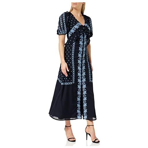 Frock and Frill abito ricamato floreale vestito per occasioni speciali, marina militare, 40 donna