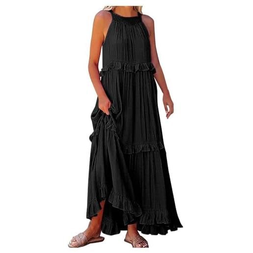 SEVETAT abito estivo da donna, corto, linea a, abito da sera, elegante, ricamato, con volant, per il tempo libero, scollo a v, a maniche corte, estivo, dolce, bianco, l