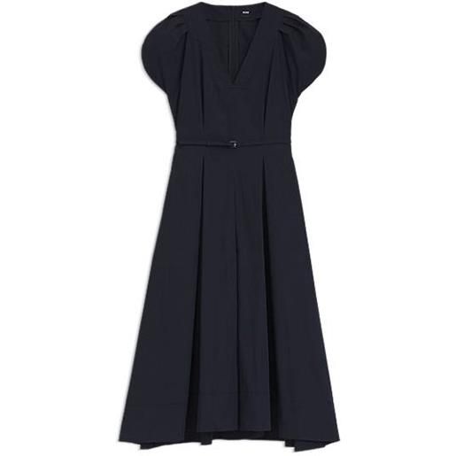 XXGJOALD abito midi da donna in cotone e lino con scollo a v, maniche a 3/4, stampa floreale bohémien, linea ad a, con parte anteriore plissettata, estivo, leggero e traspirante, blu navy, taglia m