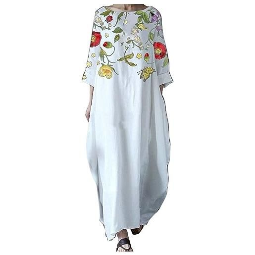 Generic vestito lungo in denim con bottoni da donna, con risvolto, a maniche lunghe, ampio e leggero, lungo in jeans