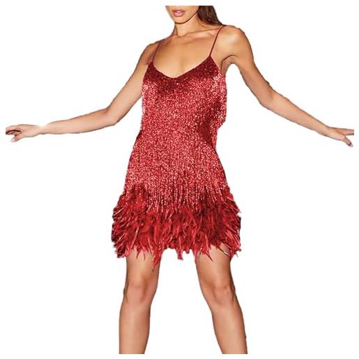TOSHIKII abito da donna con piume di nappa con paillettes abito da donna sexy con glitter senza schienale abito da donna con frange scintillanti