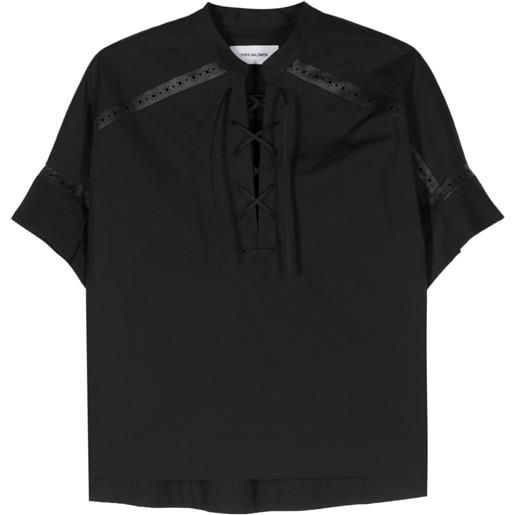 Yves Salomon blusa con rifinitura in pelle - nero
