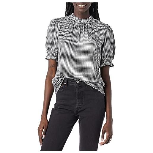 Amazon Essentials blusa chemisier corta con maniche a sbuffo in twill fluido donna, nero, l