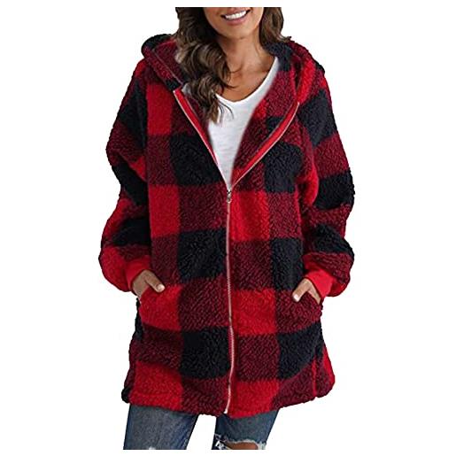 Peuignao camicia giacca donna scozzese teddy cappotto pile lungo donna camicie giacca quadri felpata sherpa fleece jacket donna giubbotto peloso giacche pile felpate teddy giacca orsetto pelosa donna rosso m