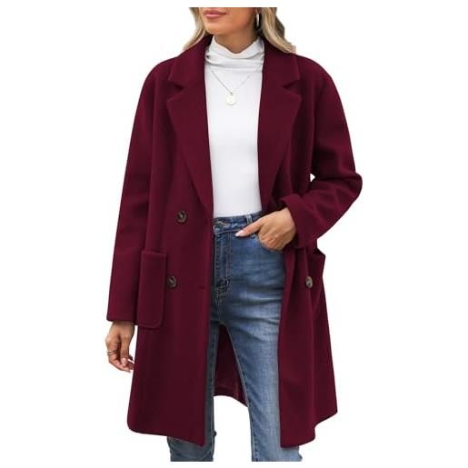 Generisch cappotto invernale da donna, con scollo a v, trench, lungo, caldo, in lana, autunno, inverno, da donna, dritto, doppio petto, elegante cappotto invernale con tasche, caffè, s
