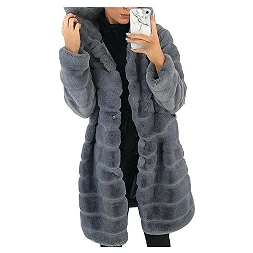 Vagbalena cappotto donna in lana felpata con cappuccio giacca lunga inverno casual in pile finto montone cappotto con cappuccio giacca lunga calda cardigan pelliccia finta peluche giacca (grigio, m)