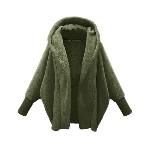 Generic cardigan da donna invernale 2024 con maniche a pipistrello in pile aperto sul davanti con cappuccio, giacca in pile oversize, verde militare, xxl