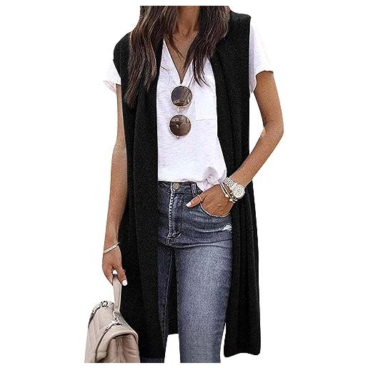 Breezy Lane cardigan da donna senza maniche a coste con apertura frontale drappeggiato gilet spolverino lungo maglione giacca con tasche, marina militare, s