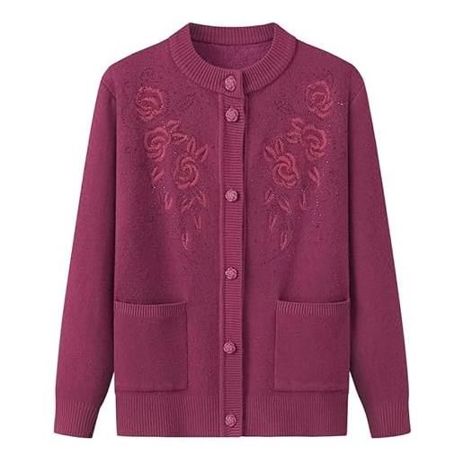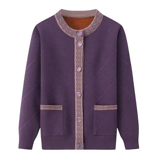 BPKKLLSU cardigan lavorato a maglia di mezza età e anziano, girocollo, spesso, foderato in pile, da nonna, con stampa floreale, da mamma, caldo, cappotto, giacca, primavera, autunno, viola, taglia l