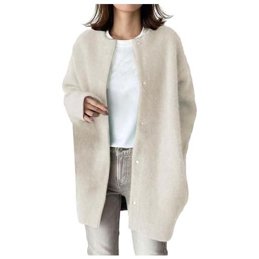 ZHAOMEI cardigan donna invernale cardigan da nonna in pile caldo tinta unita da donna, classico girocollo, con bottoni, maglione da nonna, giacca da cardigan con tasche, cammello xl