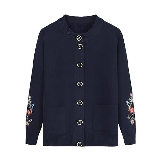 WLLDDDIU cardigan lavorato a maglia per donne di mezza età e anziane, maglione caldo e spesso, giacca in maglia da vecchia signora, maglione in pile ricamato da donna, cappotto da nonna, blu navy,