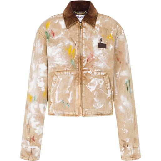 Moschino giacca con effetto vernice e colletto a coste - toni neutri