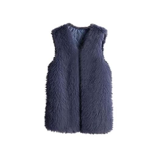 Generico gilet lungo donna pelliccia invernale cappotto smanicato pelliccia sintetica giacca donna elegante caldo gilet di peluche giubbotto