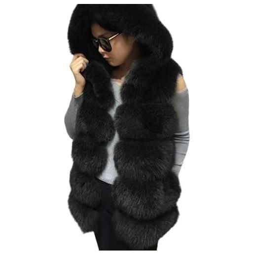 LIEROLYE gilet in pelliccia sintetica con cappuccio da donna, giacca invernale senza maniche, caldo e spesso capospalla in peluche(dark grey)