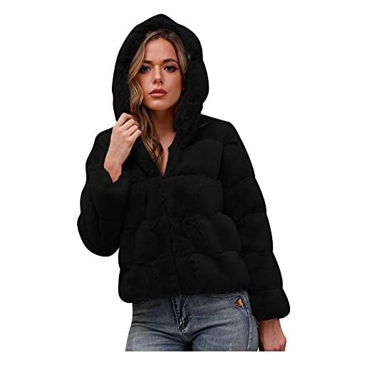 Urban classics giubbotto donna ecopelliccia con cappuccio extra grande, cappotto in pile corto, tasche laterali e chiusura ad occhiello, taglie da xs a 5xl