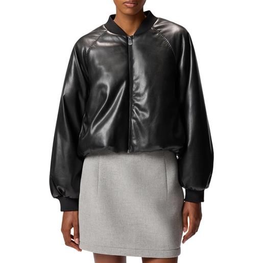 HUGO giubbotto corto in similpelle con logo goffrato sulla parte posteriore, nero