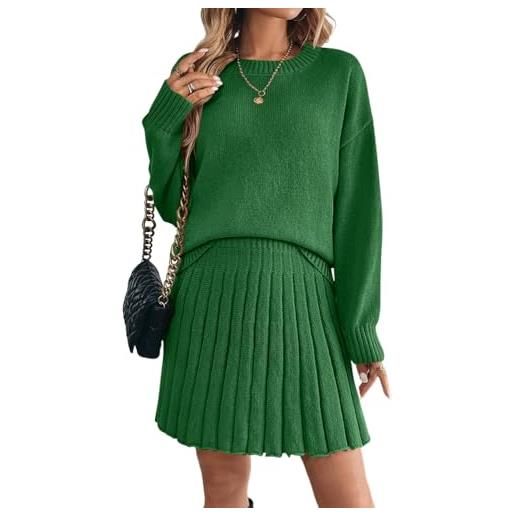 ORANDESIGNE completo gonna plissettata da donna in 2 pezzi abito a collo alto e gonna in maglia set 2 pezzi vestiti elegante vestito in maglia gonna a-line b bianco xs