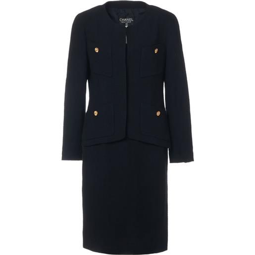 CHANEL Pre-Owned - completo con gonna e giacca senza colletto - donna - cotone/seta - 38 - blu