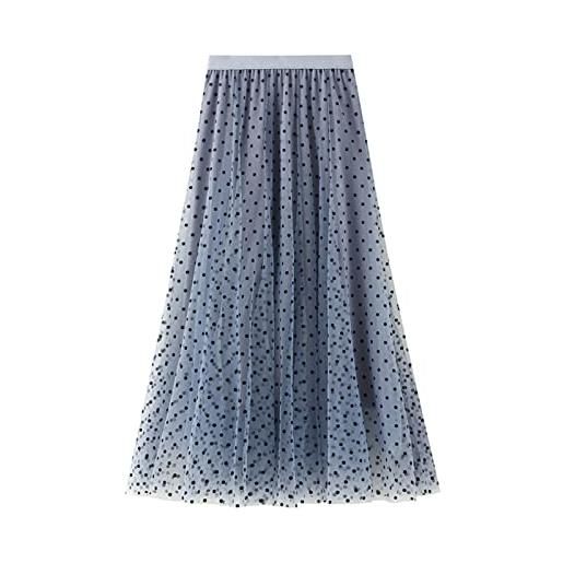 NASHALYLY maxi gonne svasate a trapezio in chiffon elastico a vita alta, beja blue. , l
