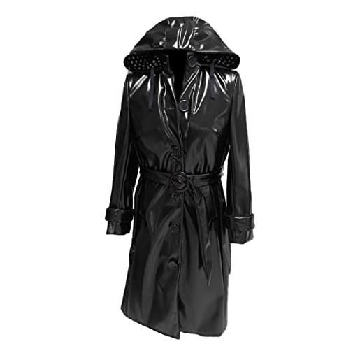 MAXDUD donne pvc lucido pelle con cappuccio leggero impermeabile elegante trench lungo cappotto, nero - pelle pvc, xxl